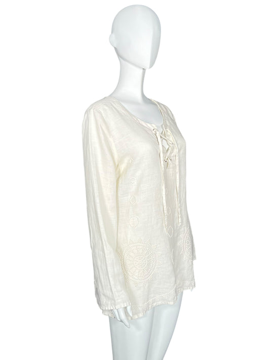 ALEXANDER MCQUEEN 1990s Embroidered Linen Lace-Up Blouse (L)