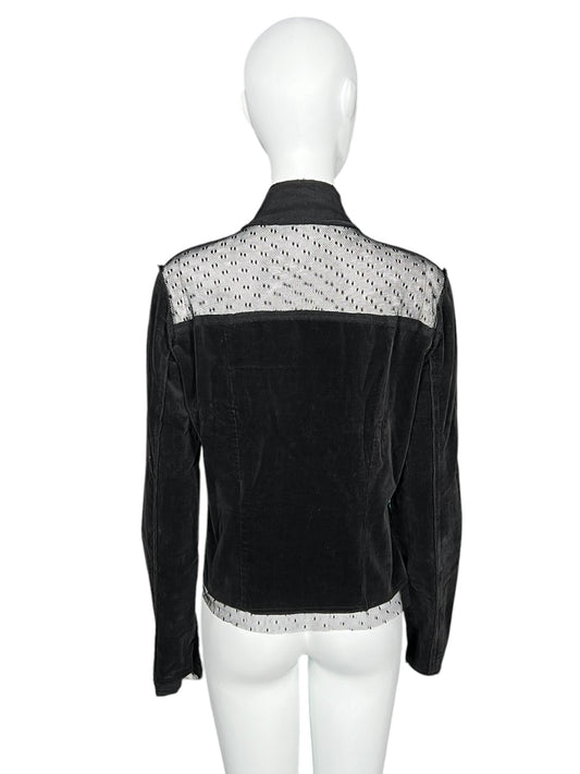 ALEXANDER MCQUEEN 1990s Black Velvet Jacket with Lace Details (L-XL)
