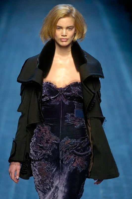 CHRISTIAN DIOR F/W 2005 by John Galliano Velvet-Trimmed Purple Midi Dress (M)