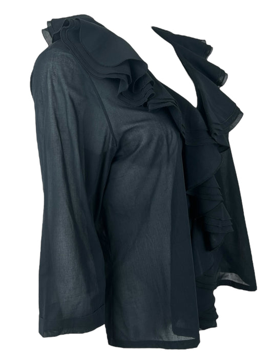 CHRISTIAN DIOR 2000s Ruffled Black Sheer Blouse (M)