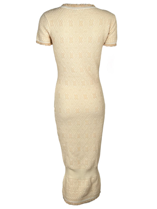 CHRISTIAN DIOR F/W 1999 Cream Fringed Wool Knit Dress (S)