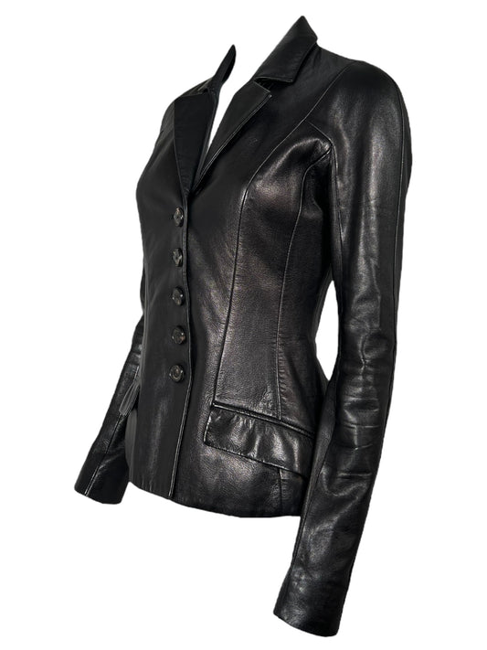 CHRISTIAN DIOR F/W 2008 Fitted Black Leather Blazer (S)