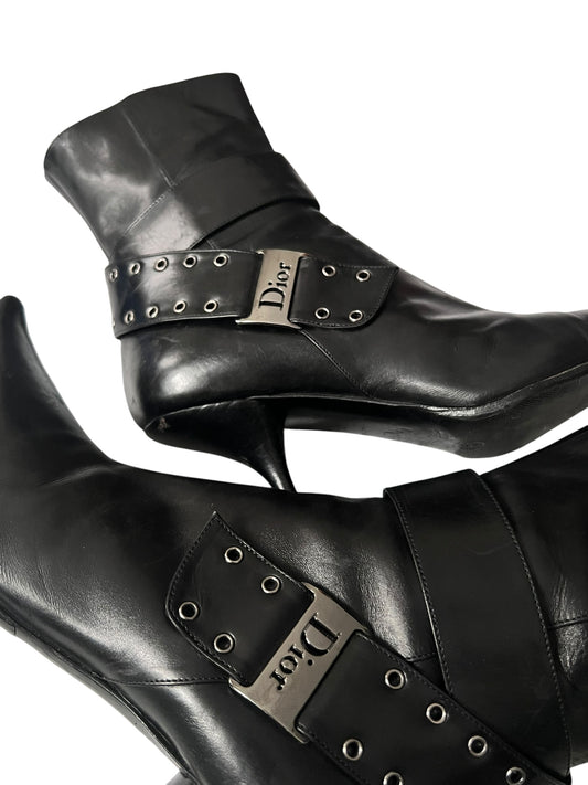CHRISTIAN DIOR by John Galliano Studded Black Leather Ankle Boots (36,5)