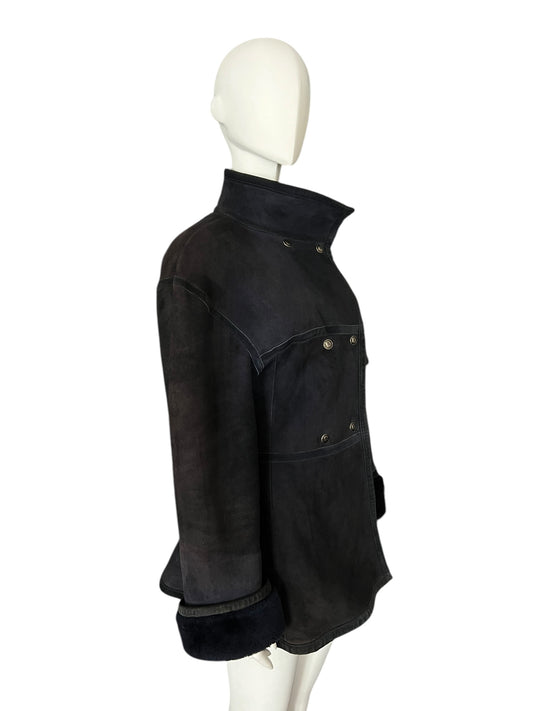 CHRISTIAN DIOR Fourrure Navy Shearling Pea Coat (M-L)