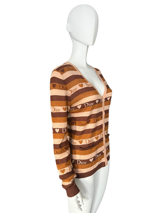 CHRISTIAN DIOR F/W 2005 Striped Logo Cardigan (L)