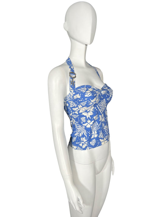 CHRISTIAN DIOR S/S 2004 Blue “Dior Surf” Halter Top by John Galliano (XS-S)