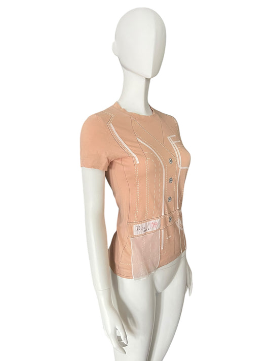 CHRISTIAN DIOR S/S 2006 Nude Trompe-l'œil T-Shirt by John Galliano (S)