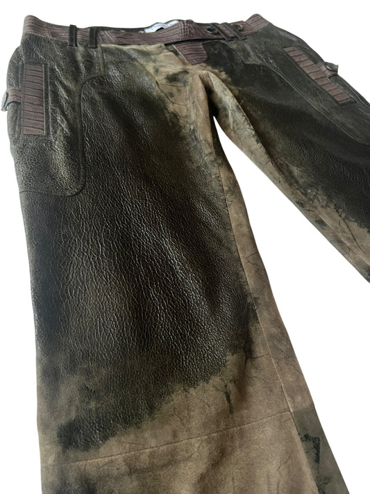 CHRISTIAN DIOR F/W 2006 by John Galliano Cracked Leather and Suede Trousers (L)