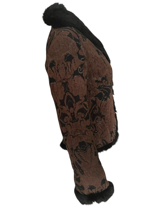 ROBERTO CAVALLI Class 2000s Baroque Faux Fur-Trimmed Jacket (S-M)