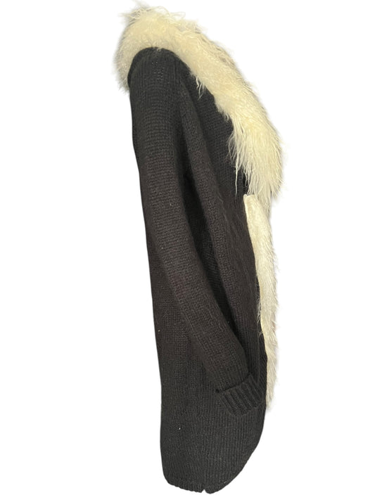 GALLIANO 2000s Black Knit Wrap Cardigan with Shearling Collar (S-M)