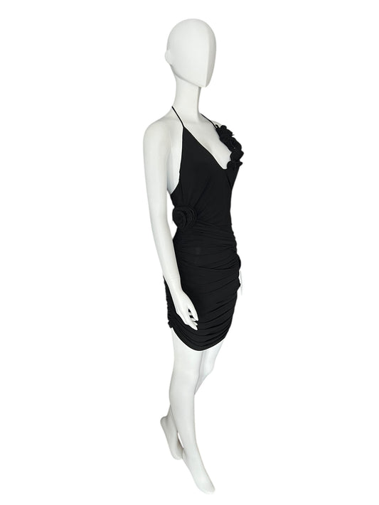 MAGDA BUTRYM Black Ruched Halter Dress with Rosette Accents (S)