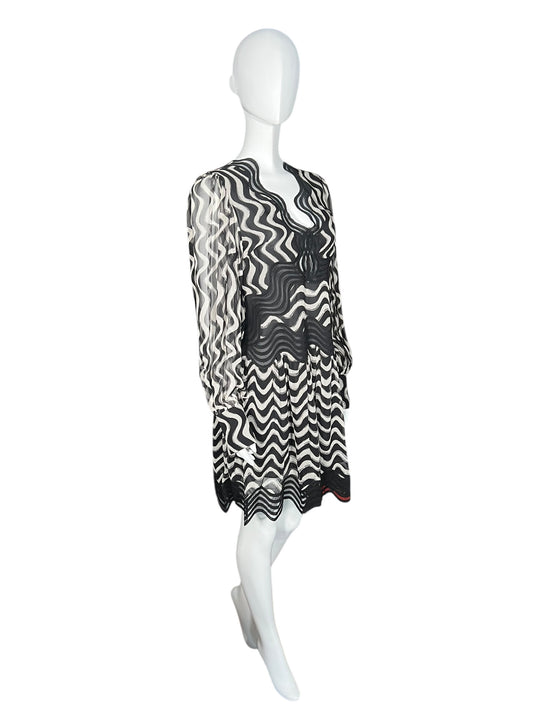 STELLA MCCARTNEY Black and White Wave Embroidered Silk Mini Dress (S)