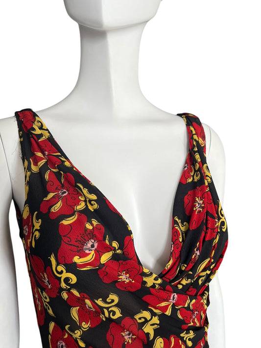 PRADA 2000s Red and Yellow Floral Silk Dress (XS-S)