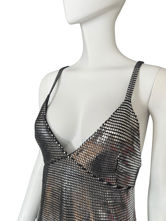 PACO RABANNE 1990s Metallic Grid Slip Dress (M)