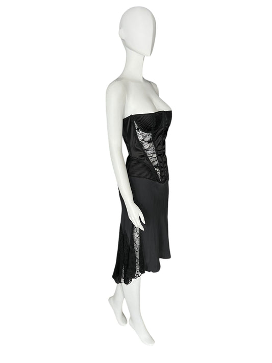 JULIEN MACDONALD Black Silk Corset Lace Detail Dress (L)