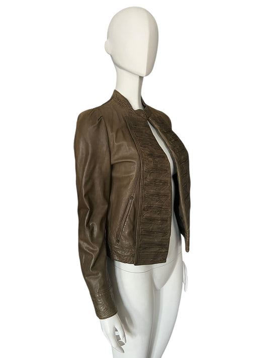 PLEIN SUD Military-Style Brown Leather Jacket (M)