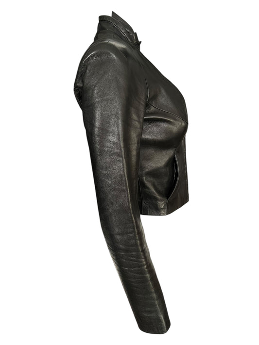 PLEIN SUD by Fayçal Amor 2000s Black Leather High-Neck Jacket (S-M)