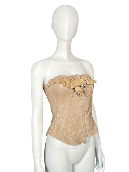 PLEIN SUD 2002 Beige Leather Bustier (S-M)