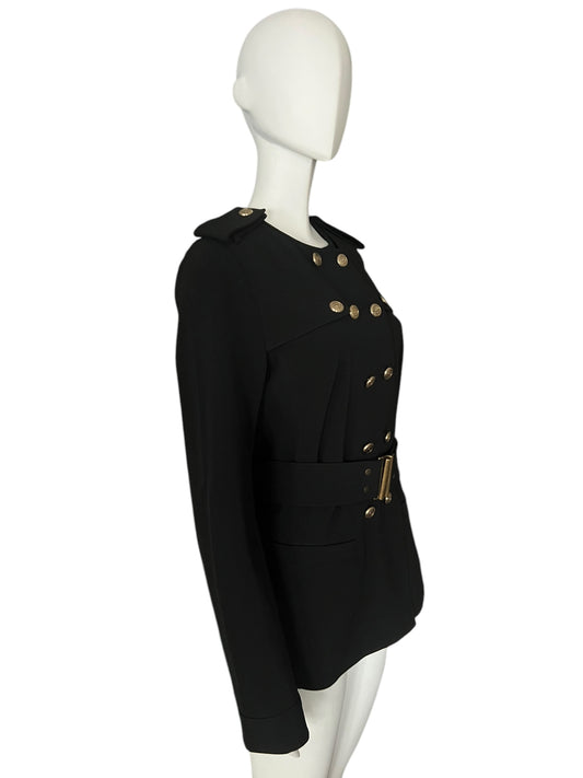 PLEIN SUD Military-Inspired Double-Breasted Black Jacket (XL)