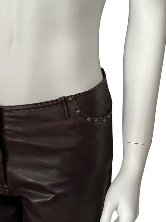 PLEIN SUD F/W 2002 Aubergine-Tinted Brown Leather Studded Pants (S)