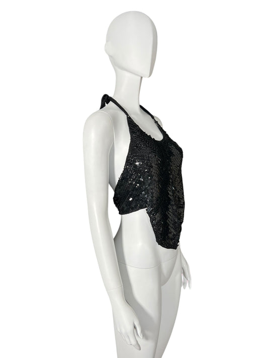 PLEIN SUD Black Sequin Halter Top (L)