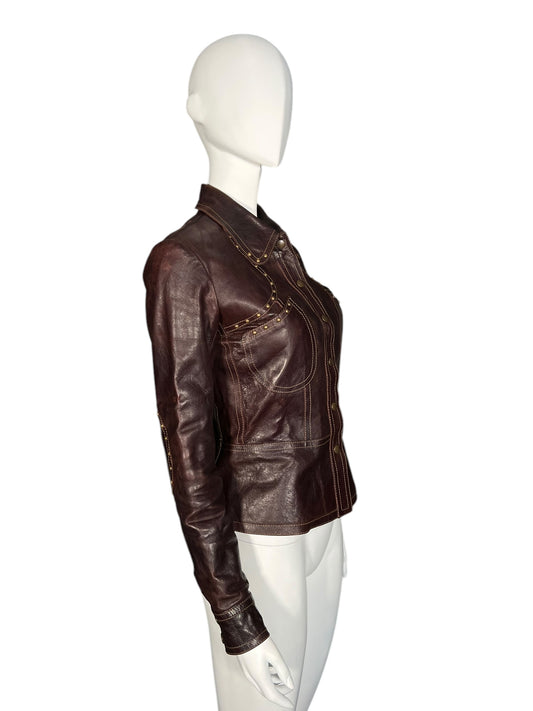 PLEIN SUD F/W 2002 Aubergine-Tinted Brown Leather Studded Jacket (S)