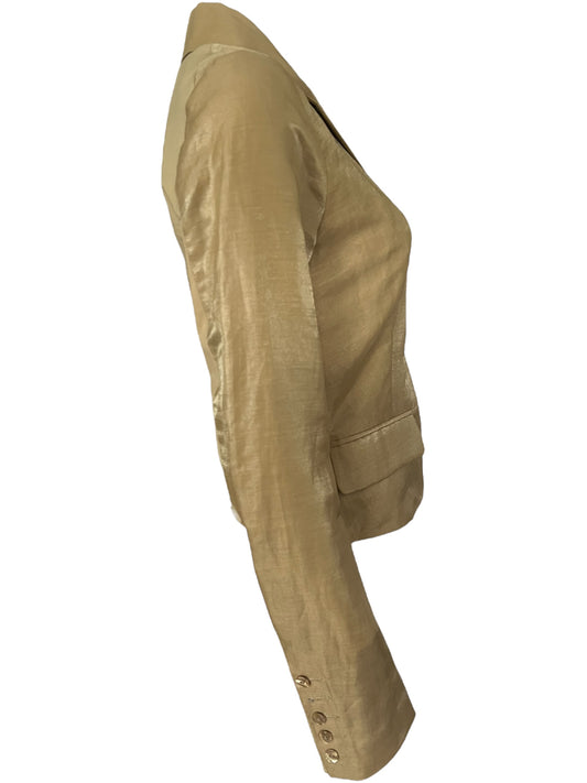 PLEIN SUD Gold-Toned Shimmer Linen Tailored Jacket (M)