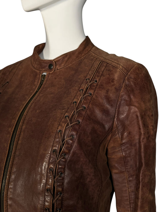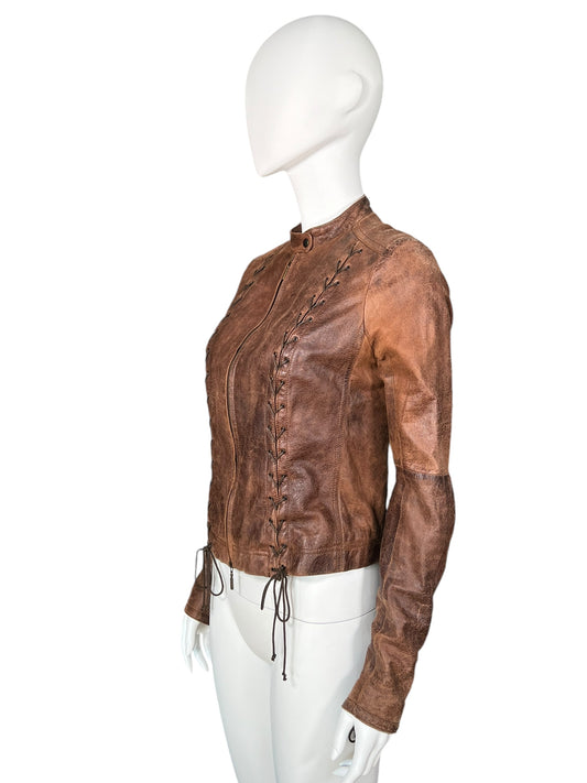 PLEIN SUD 1990s Brown Lace-Up Leather Jacket (S)