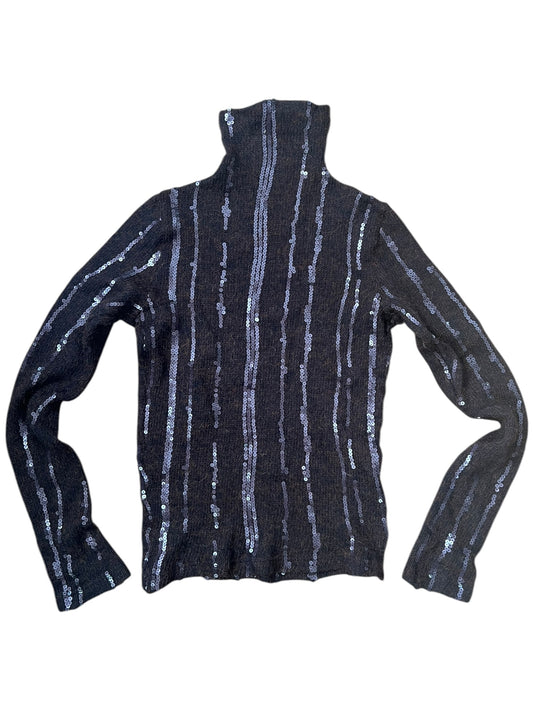 PLEIN SUD 2000s Brown Sequin Alpaca Turtleneck (L)
