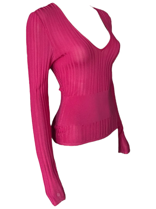 THIERRY MUGLER 1990s Fuchsia Ribbed Knit Top (S)