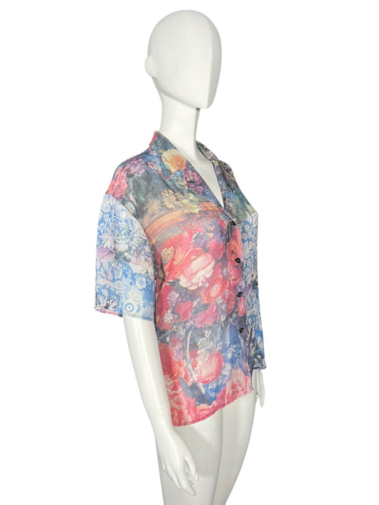 CHRISTIAN DIOR Floral Print Sheer Shirt (L)