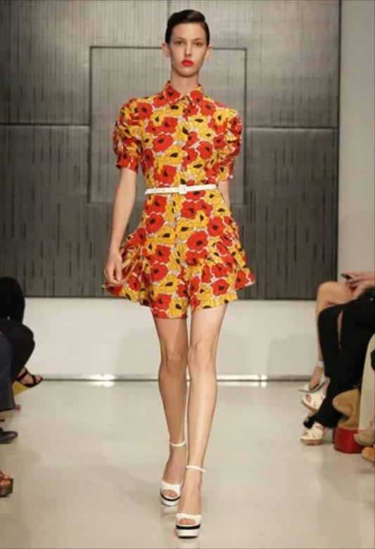 YVES SAINT LAURENT Resort 2012 Floral Print Mini Dress (M-L)