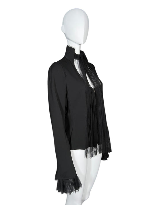 YVES SAINT LAURENT by Tom Ford F/W 2002 Black Silk Ruffled Blouse (L-XL)
