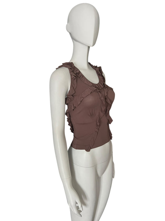 YVES SAINT LAURENT by Tom Ford 2000s Taupe Jersey Ruffle Top (S)