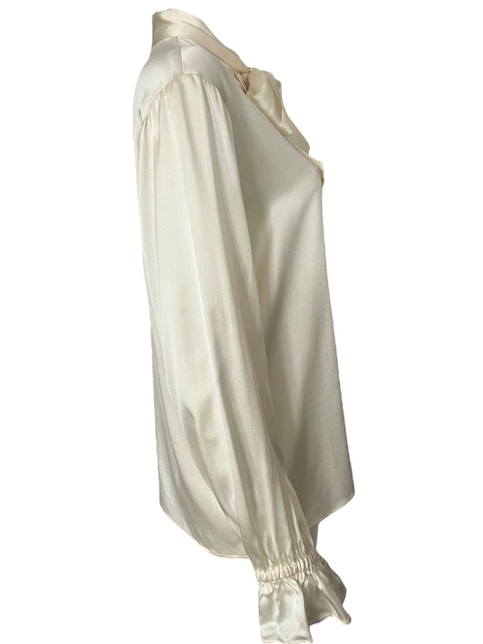 YVES SAINT LAURENT 1990s Silk Pussy-Bow Blouse (XL)