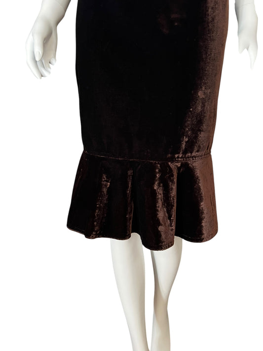 YVES SAINT LAURENT by Tom Ford F/W 2003 Chocolate Brown Velvet Pencil Skirt (XS-S)
