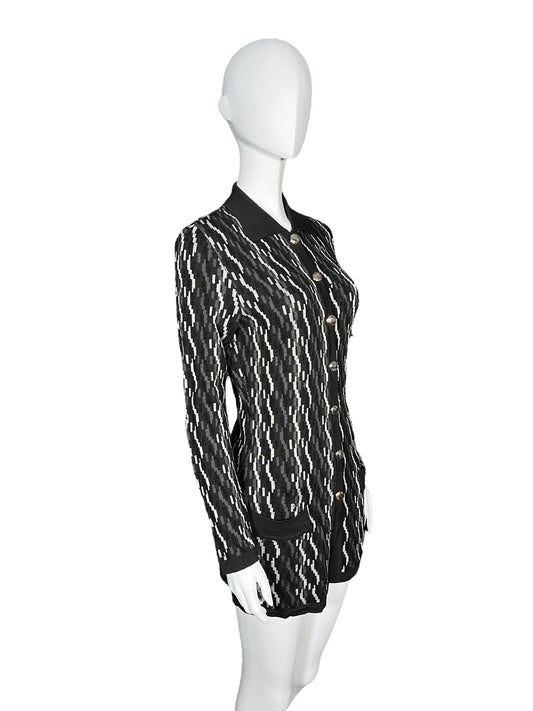 YVES SAINT LAURENT Black and White Knitted Long Cardigan (L)