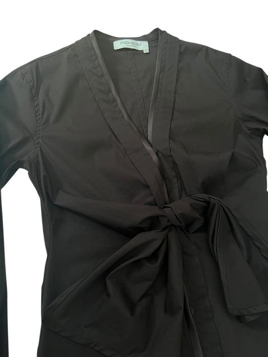 YVES SAINT LAURENT by Tom Ford 2004 Brown Cotton Bow Blouse (S)