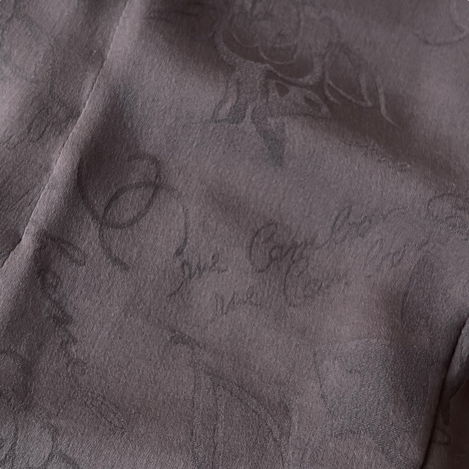 Signature chain-weighted hem and jacquard lining with interlaced motifs complete the construction.