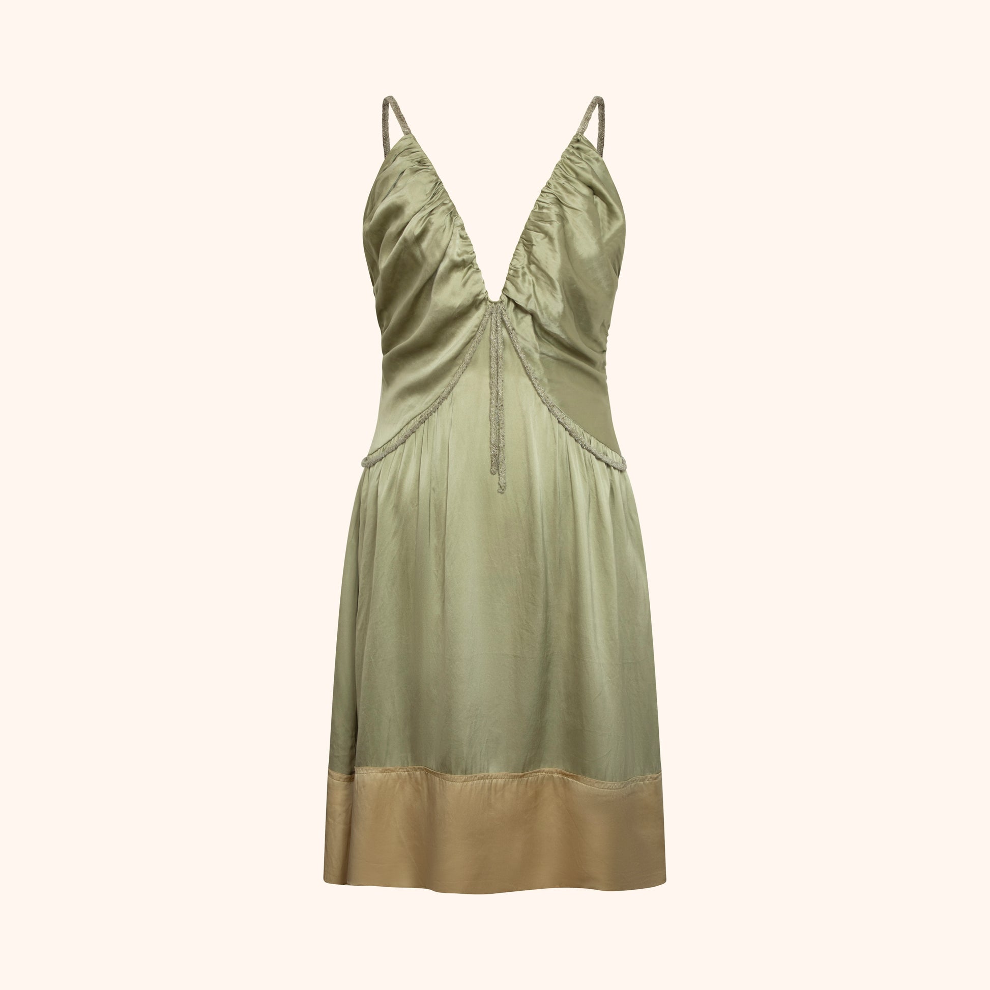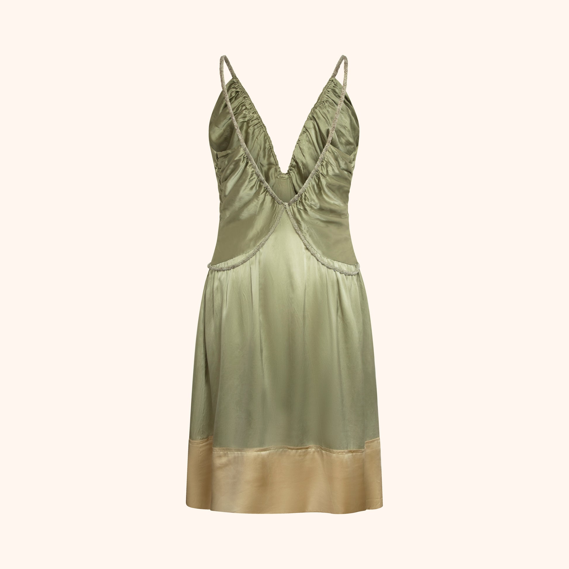 Runway piece from Phoebe Philo’s Spring/Summer 2005 collection, crafted in fluid olive silk with subtle golden undertones.