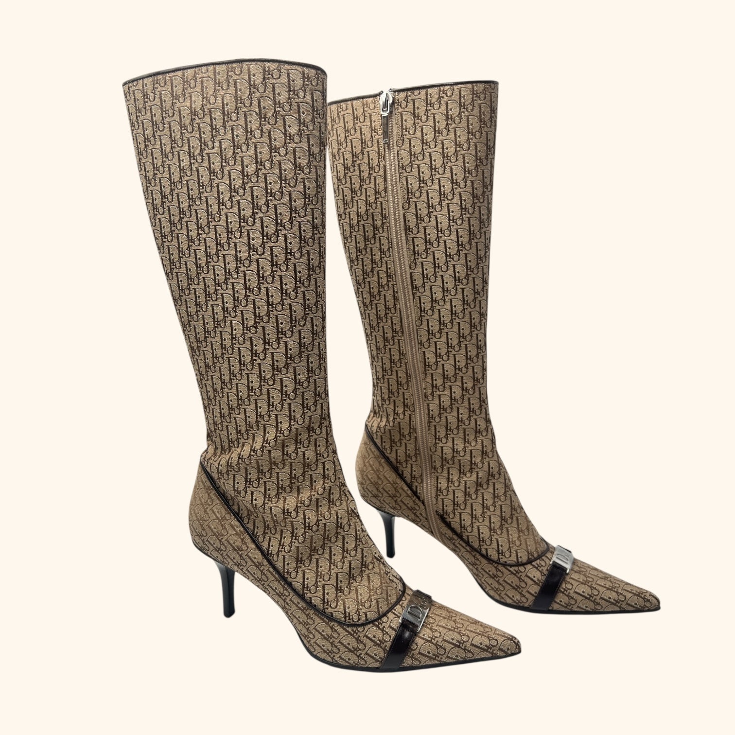 Christian Dior by John Galliano 2000s Monogram Canvas Knee Boots