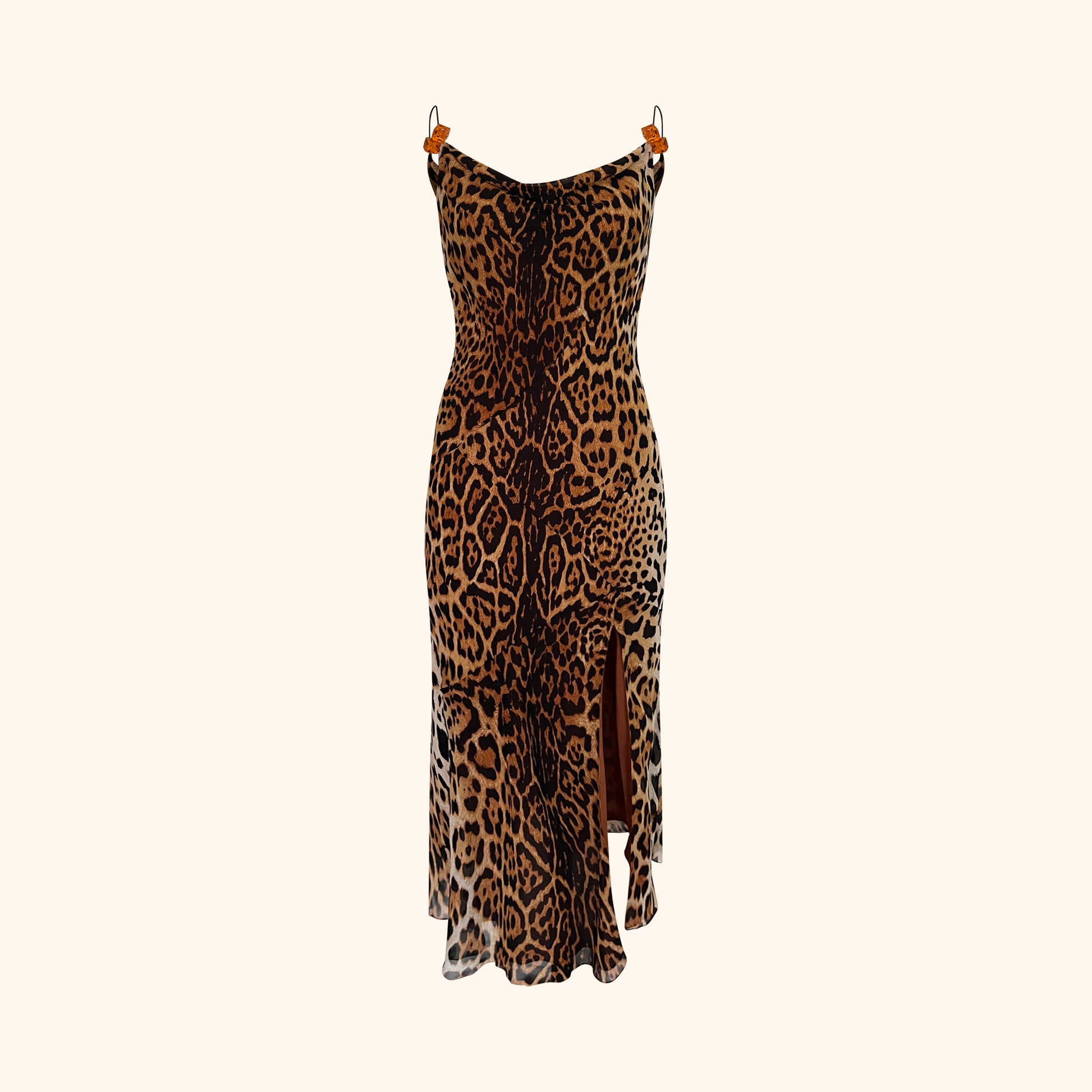 Bias-cut silk dress in Dior’s iconic cheetah print from John Galliano’s Fall/Winter 2004 collection.