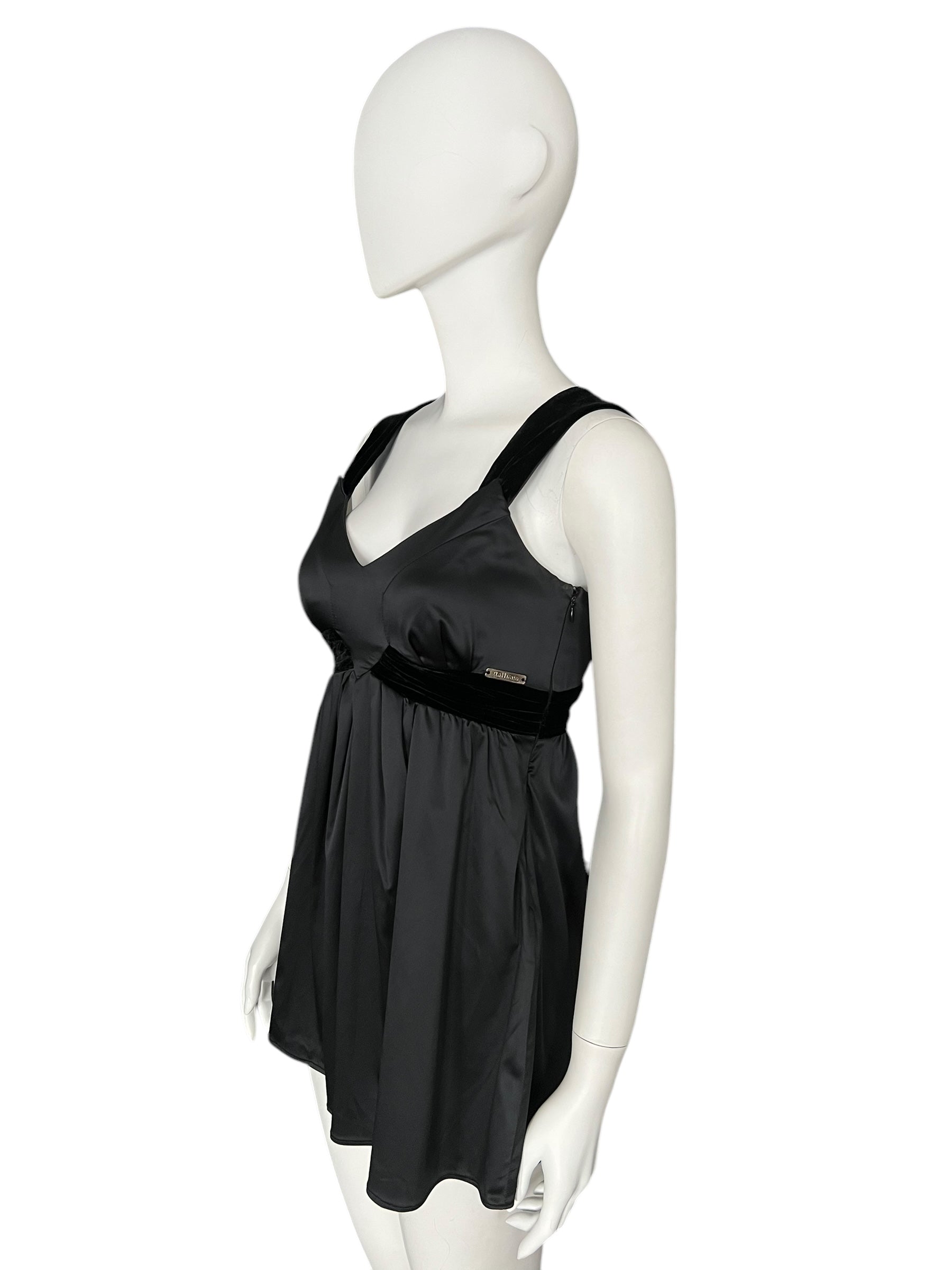 GALLIANO Black Empire-Waist Mini Dress (XS)