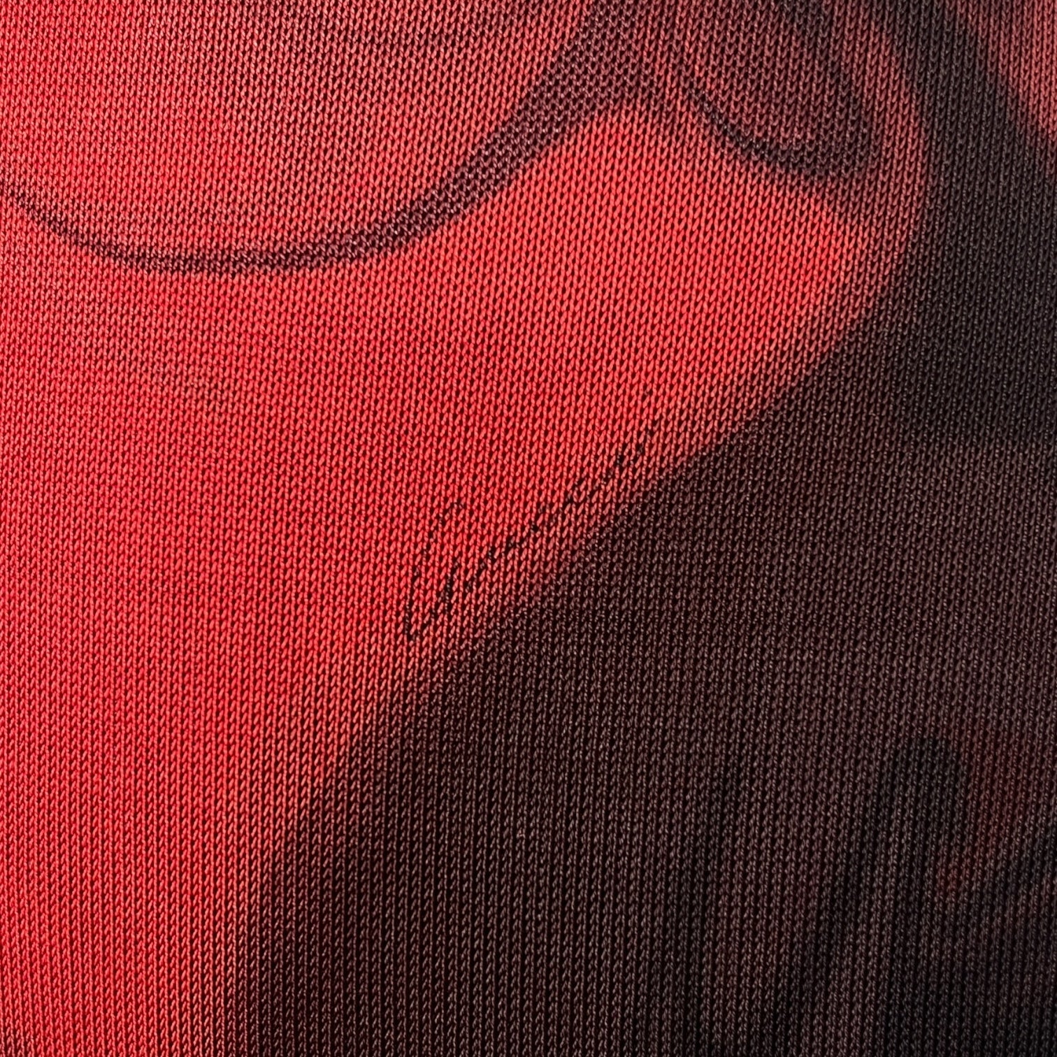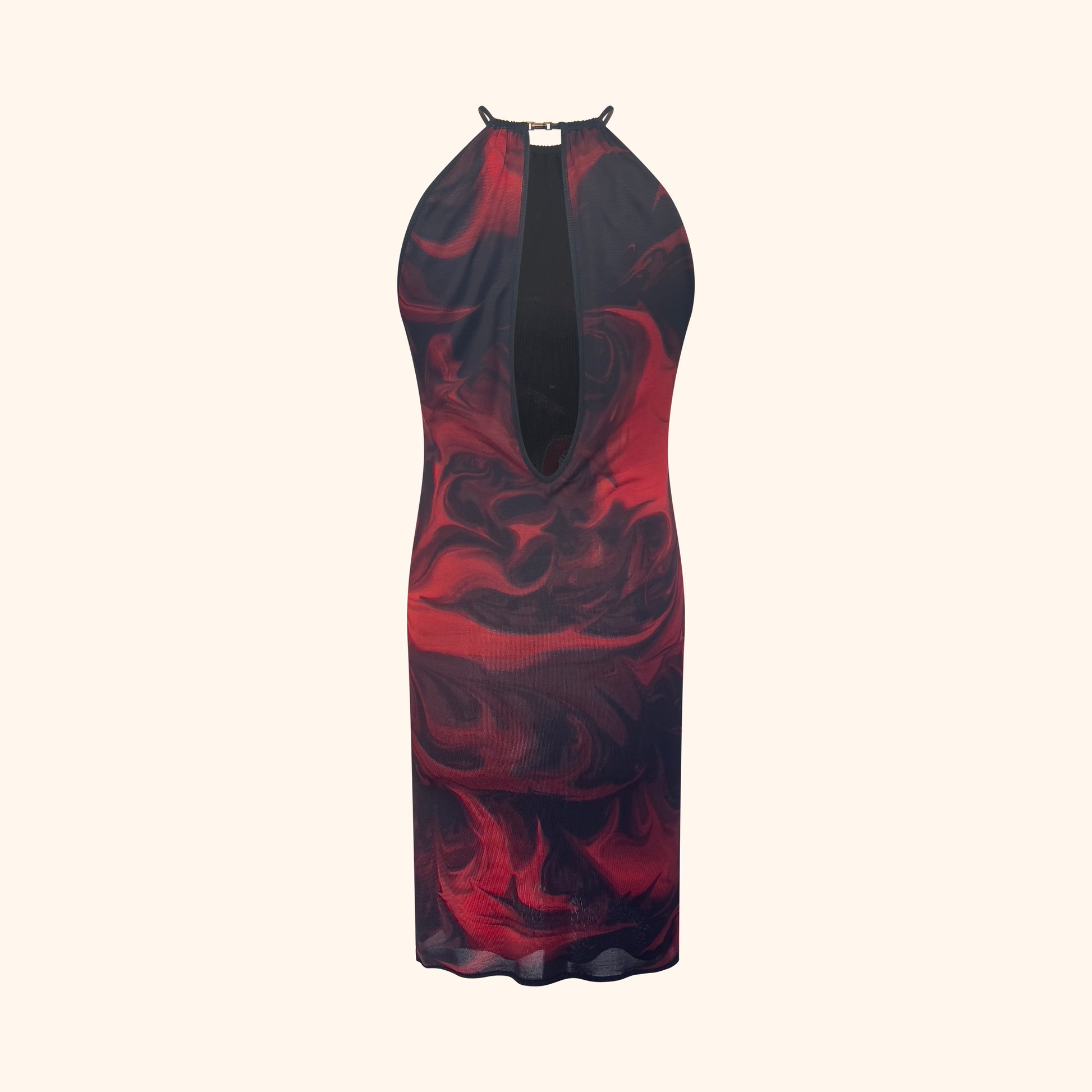 Form-fitting dress featuring the iconic red and black lava print from the Spring/Summer 2001 collection.