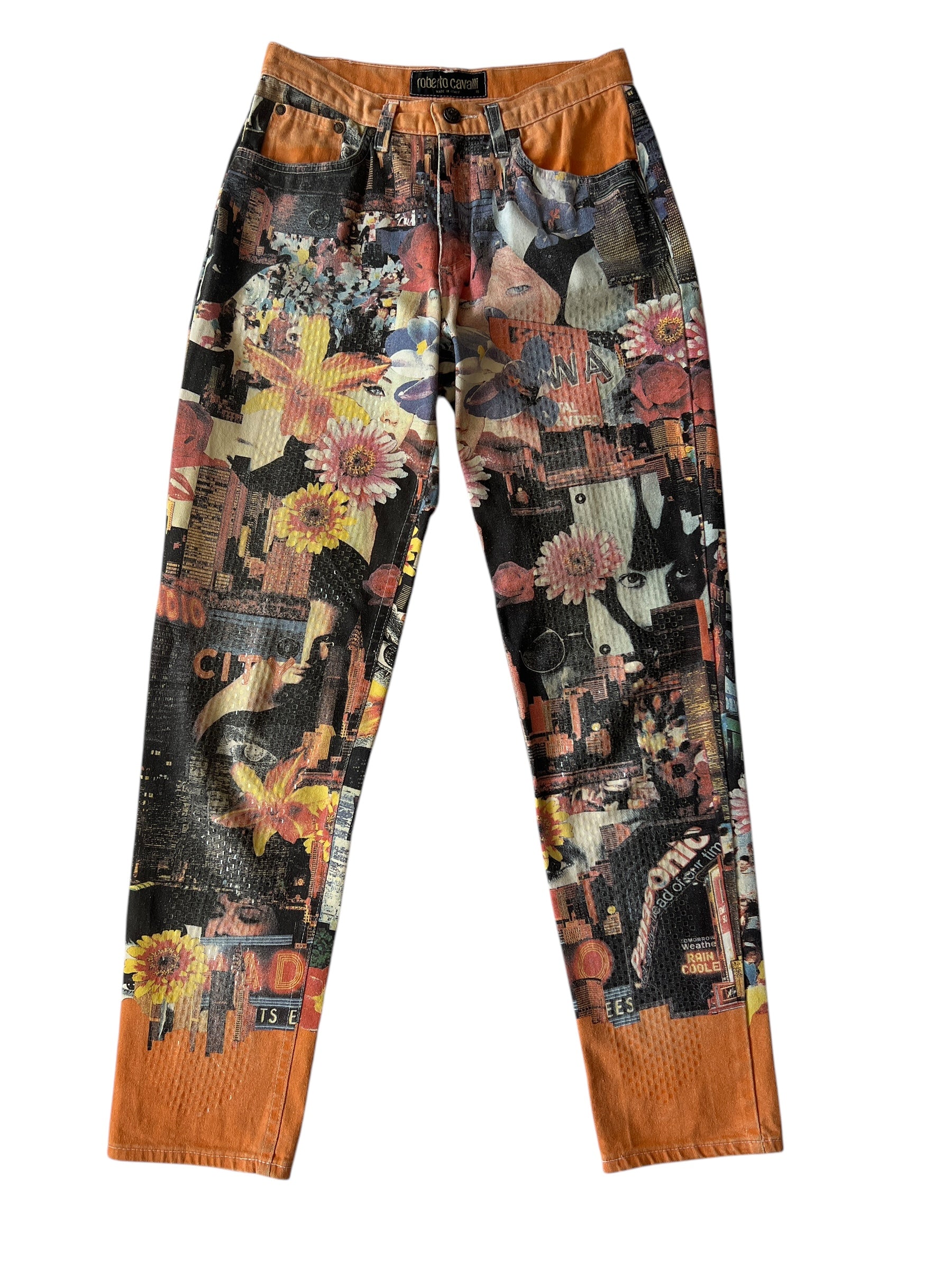 ROBERTO CAVALLI 2000s City Collage Print Jeans (S)