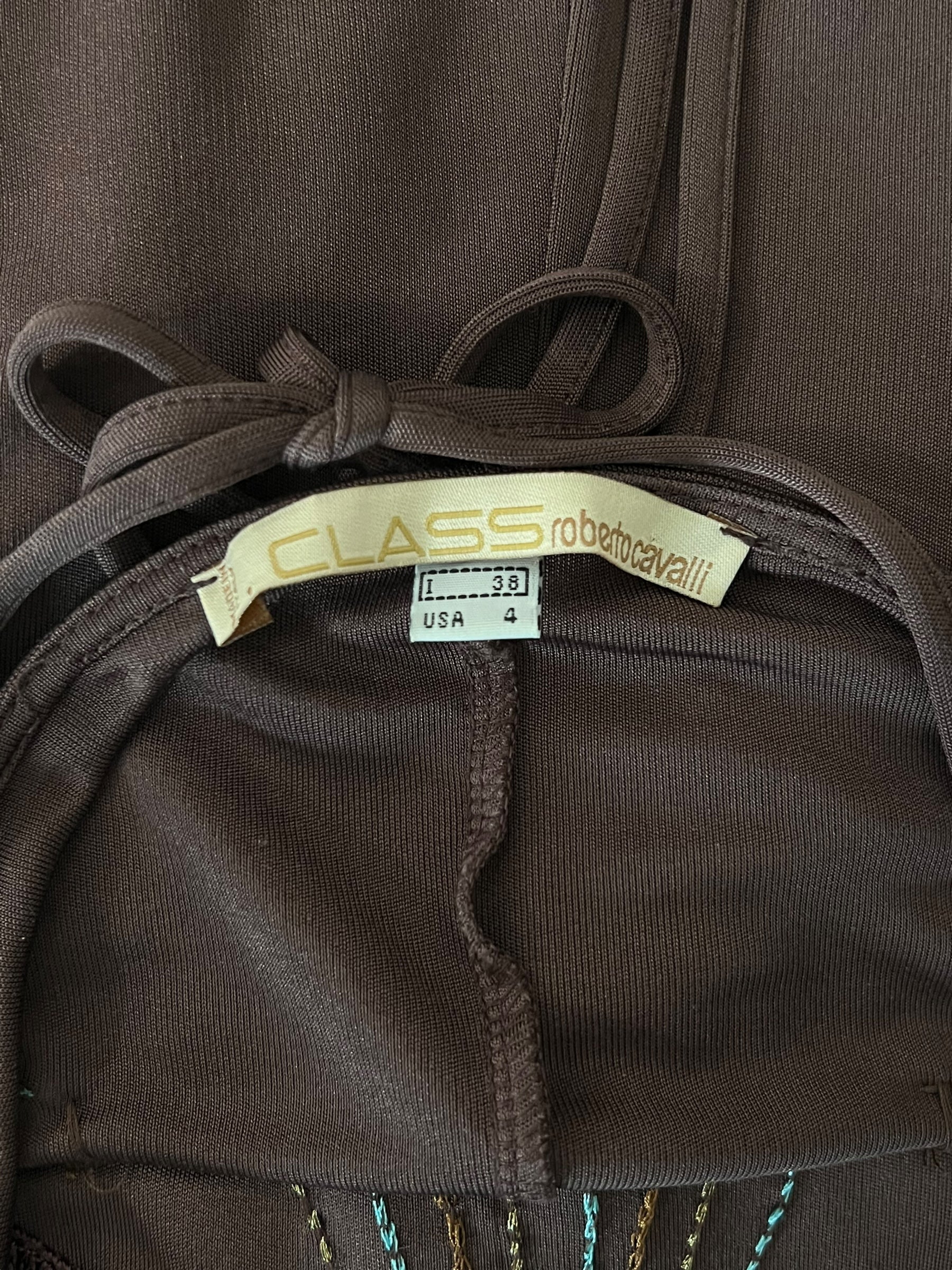 ROBERTO CAVALLI Brown Silk Beaded Dress (XS-S)