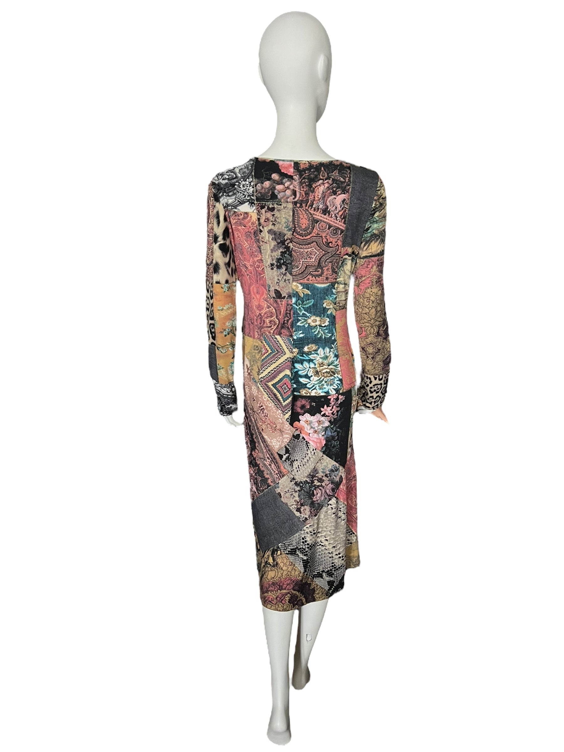 ROBERTO CAVALLI F/W 2002 Runway Patchwork Print Midi Dress (L-XL)