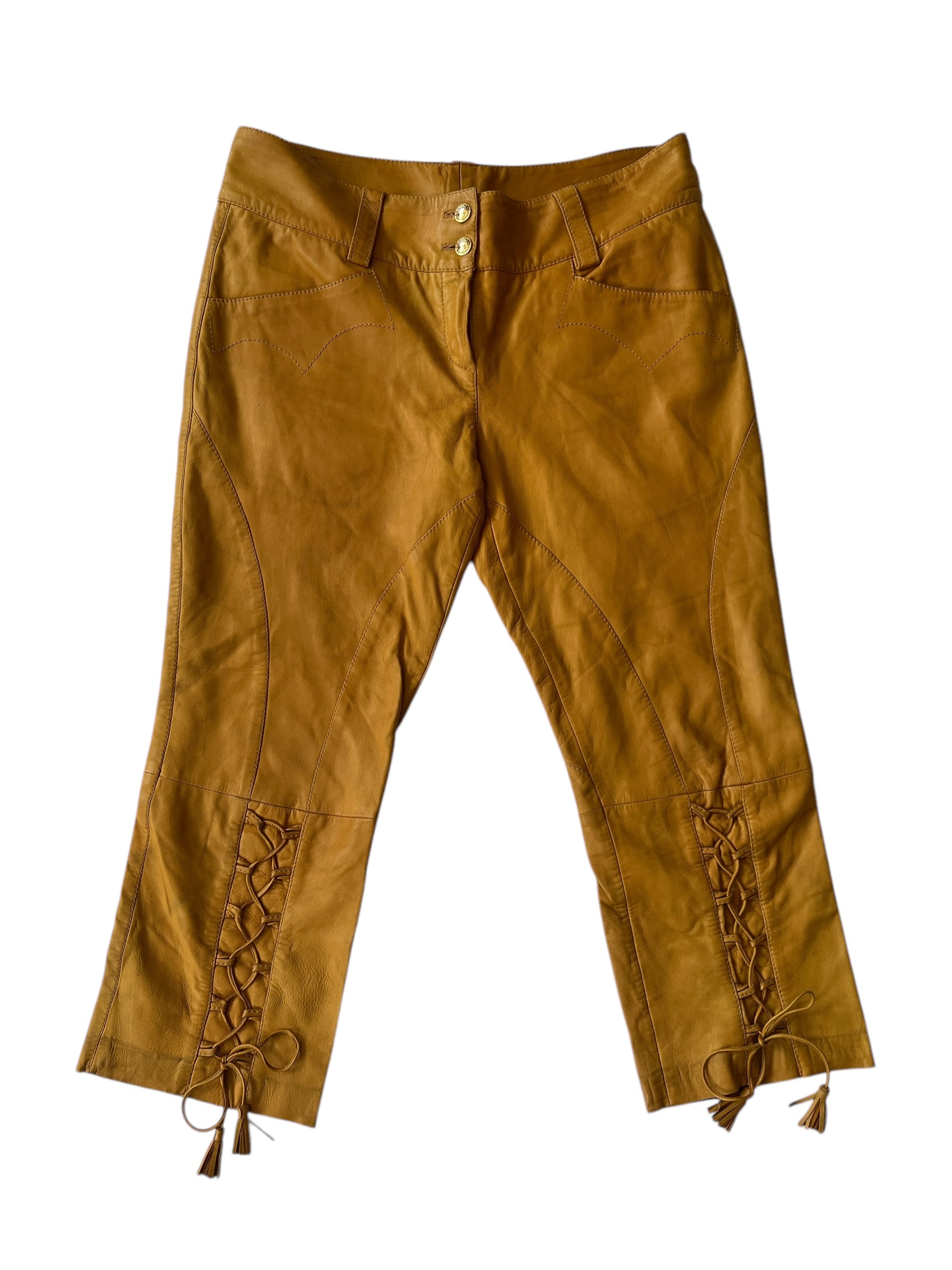 ROBERTO CAVALLI S/S 2003 Camel Leather Lace-Up Trousers (M)