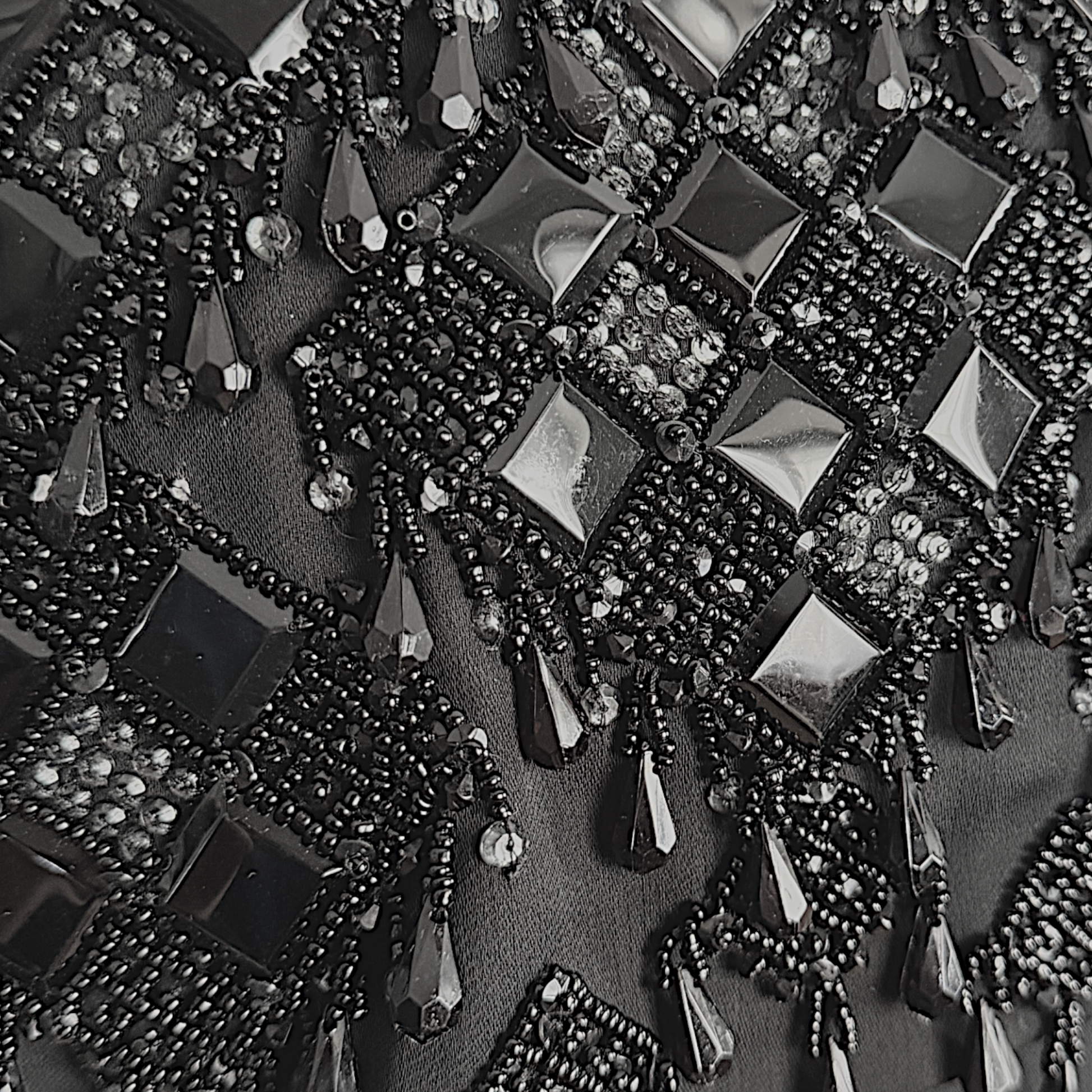 The concealed side zip closure maintains the smooth front surface, and the thoughtfully constructed fabric blend gives it a subtle sheen and fluid drape exactly suited for formal occasions.